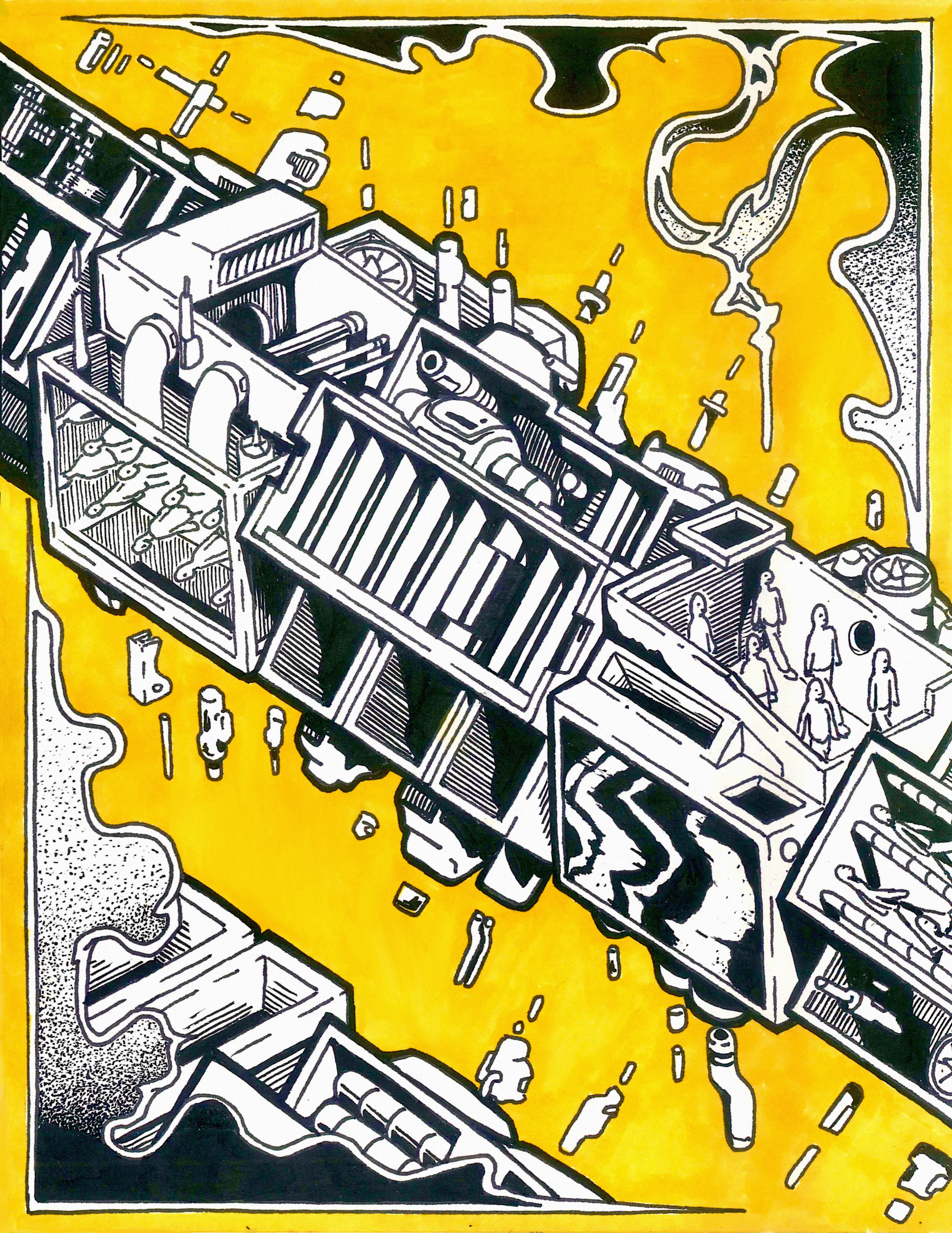 Pen and markers on paper.